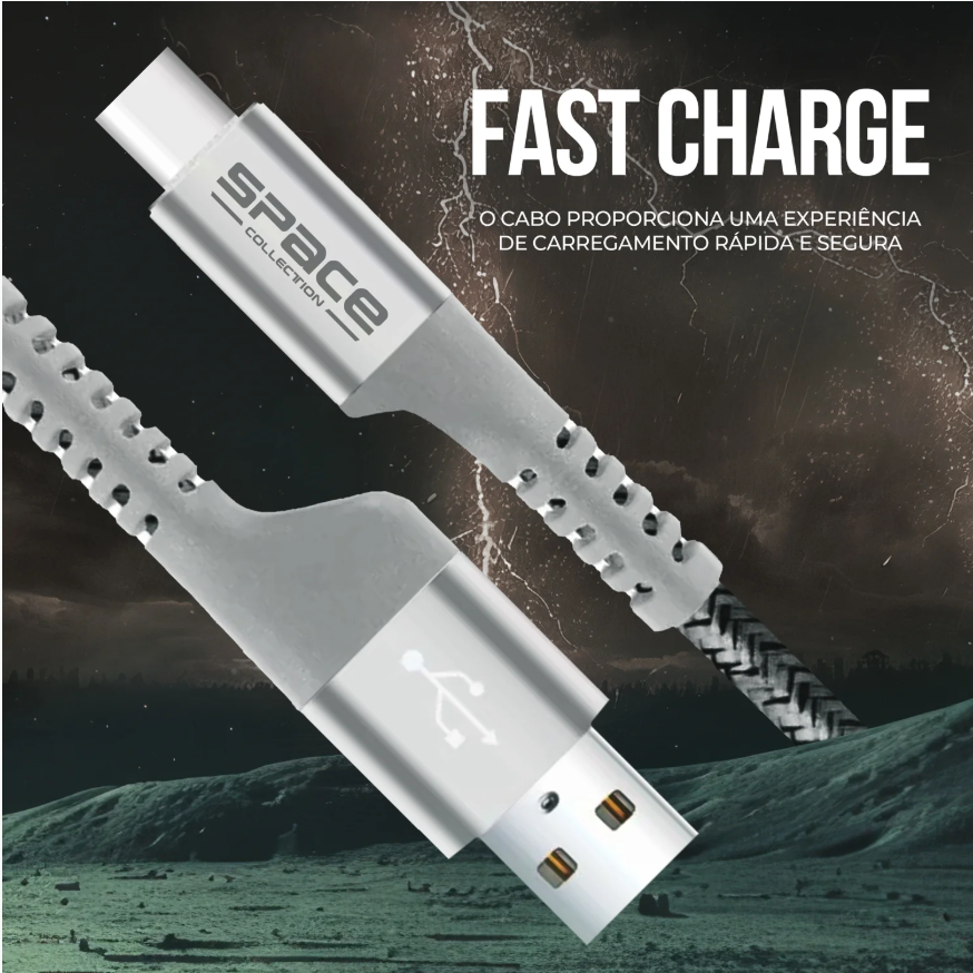 Experimente a qualidade superior do Cabo Orbit da SPACE. Projetado para oferecer velocidade e durabilidade, o cabo é compatível com Micro USB V8, Tipo C, Lightning e USB-A, tornando-o um acessório versátil para todas as suas necessidades de carregamento e transferência de dados.