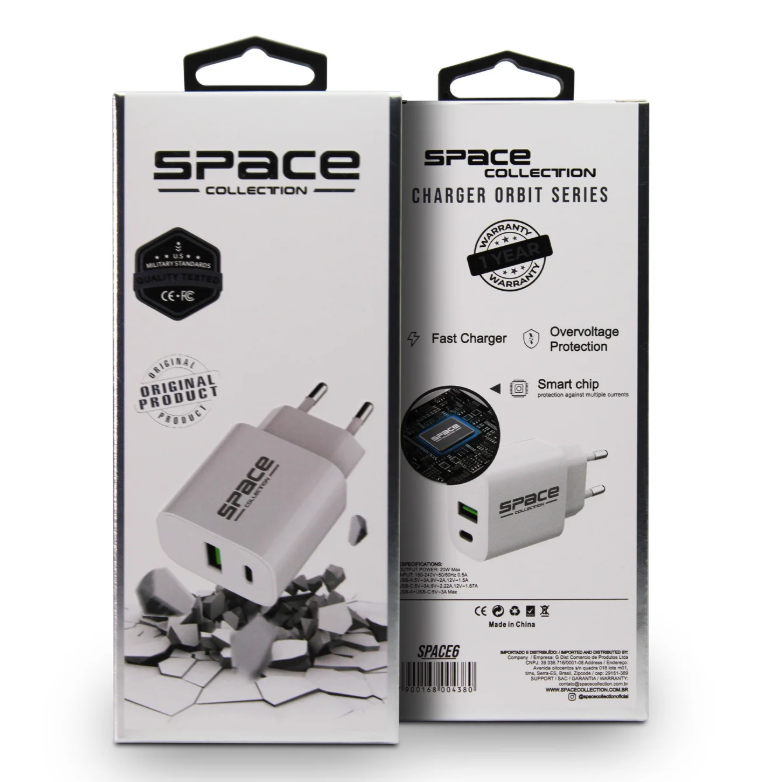 O Carregador Orbit SPACE é a escolha ideal para quem busca praticidade, desempenho e segurança no dia a dia. Com tecnologia de ponta, ele foi projetado para atender às suas necessidades com eficiência e rapidez. Equipado com a avançada tecnologia Qualcomm Quick Charge 3.0, o carregador oferece um carregamento ultrarrápido, perfeito para quem precisa de agilidade e não tem tempo a perder.